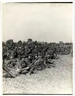 The brigade repulsed a heavy attack on the morning of 12 March, but settled into a relatively static position thereafter.[35] On 9 May, the Garhwal Brigade was used as a second wave in the first attacks of the Battle of Aubers Ridge, without success;[36] they saw action again on the night of 15 May, where the leading battalions met heavy resistance and Blackader was forced to call off the attack.[37]