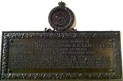 Blackader died, of liver cancer and heart failure[68] on 2 April 1921, at Queen Alexandra Military Hospital,[69] survived by his wife and two daughters,[10] and leaving a small estate of just under £450.[70] There is a memorial to him in the regimental chapel in Leicester Cathedral.[71]