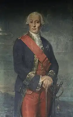 On 14 July 1789, widespread disturbances in Paris led to the seizure of the Hotel de Invalides and the Storming of the Bastille. Demands had been made to Sombreuil by the newly organised electors militia for the handing over of the thirty thousand muskets stored in the cellars of the Invalides. The governor delayed by responding that he would need approval from Versailles; while ordering his unenthusiastic pensioners to begin to disable the weapons held.[2] Unlike Bernard-René Jourdan de Launay, the governor of the Bastille, Sombreuil subsequently accepted the revolutionaries' demands to surrender his garrison without attempting armed resistance. He thereby avoided the fate of de Launay, who was seized and killed by the mob.[3]