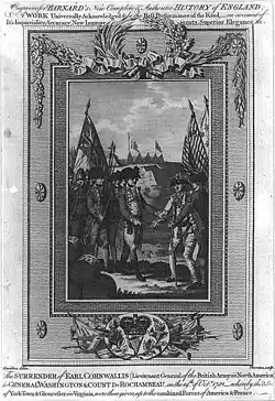 General O'Hara represented the British at the surrender of Yorktown on 19 October 1781, as Cornwallis' adjutant, when the latter pleaded illness. He first attempted to surrender to French Comte de Rochambeau, who declined his sword and deferred to General George Washington. Washington declined and deferred to Major General Benjamin Lincoln, who was serving as Washington's second-in-command and had surrendered to General Clinton at Charleston in May 1780. O'Hara is depicted in the painting The Surrender of Lord Cornwallis by John Trumbull.