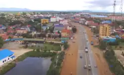 The center of the town hosts a market, surrounded by bicycle shops, a dispensary and small restaurants. There is a guesthouse (Pheng Ang Guesthouse) just minutes away for travelers.