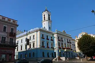 Chernivtsi Town Hall (Ukrainian: Чернівецька ратуша) is a neoclassical historic town hall (ratusha), located at Tsentralna Square in Chernivtsi, Ukraine. Constructed from 1843 to 1847 by a Polish-Austrian architect Andreas Mikulicz von Radecki, the building is an architectural monument of national significance.[1] It currently serves as the seat of Chernivtsi City Council and houses the office of the mayor of the city.