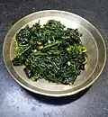 Most of the traditional and tribal foods are made of rice and rice flour, curd and a variety of green leafy vegetables like lal bhaji, cholai bhaji, chech bhaji, kanda bhaji, kheksi, kathal, kochai patta, kohda and bohar bhaji (Blossom of Lesuaa or Rasaulaa in Hindi, mostly used for making achaar). Badi and Bijori are optional food categories; gulgula (bobra), bidiya, dhoodh fara, bafauli, basuli, balooshahi, singhara, tikhur, anarsa and khurmi fall in rice flour include fara/muthiya (rice rolls in white sauce), cheela (dosa like dish made with rice batter), angakar roti, chousela roti (rice puris), etc. One of the common meal had during the scorching summer is Bore Baasi (literally means dipped rice from last cooked meal) which mainly consists of cooked rice dipped in water/dahi/buttermilk. It is mostly accompanied by pickle and raw onion. It helps maintain the water levels in the body, keeping it cool and hydrated during the hot and arid summer days.[7]