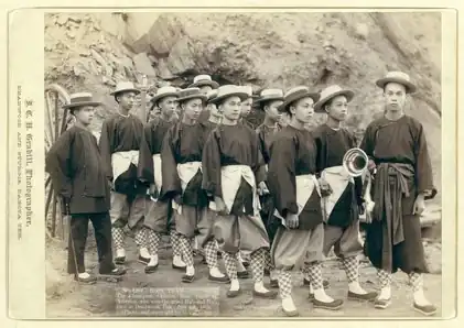 In addition to Deadwood's frontier culture, it was also home to the largest Chinatown of any city east of San Francisco.[1] Although Chinese immigrants also resided multiple areas of the West, many moved to Deadwood following the Gold Rush of this time. As early as 1875, the Black Hills Daily Times began to report that "rice and the 'other necessities of life' " were being transported by train for the "so-called 'Celestial chuckleheads from the Flowery Kingdom.' " [1] The same paper also reported Chinese immigrants who were moving towards Deadwood from Denver, Colorado.[12] The U.S. Census of 1880 lists 116 individuals,[13] but local historians suggest that as many as 400 Chinese individuals, including 14 women, resided in this Chinatown.[4] These individuals established themselves in a quarter of land between Deadwood and Elizabethtown and created what would become "a cultural, social, and economic nucleus for many Chinese living and working in the surrounding smaller mining camps and towns."[14]