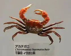 Chiromantes haematocheir, commonly known as red-clawed crab, is a species of mudflat crab in the family Sesarmidae. It is endemic to East Asia and quite distinct from the other species placed in the genus Chiromantes. The genus may be restricted to this one species.[1]