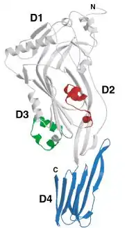 The binding of CDC to its target membrane requires the recognition of cholesterol or in the case of intermedilysin (ILY; TC# 1.C.12.1.5), the recognition of human CD59 membrane-anchored protein. The recognition of cholesterol provides specificity for eukaryotic cells and the specificity for the glycosylphosphatidylinositol-anchored protein CD59 provides specificity for human cells. Cholesterol is not required for intermedilysin (ILY) to bind to a target cell, as it uses human CD59 for initial attachment, but the presence of cholesterol is required for pore formation by all CDC.[21][22] CDC are sensitive to both oxygen and cholesterol. Toxins isolated from culture supernatants, pre-incubated with cholesterol, were inactivated once exposed to oxygen.[23] CDC are also pH-sensitive. A change of pH in a medium from 7.4 to 6.0 caused a conformational change in perfringolysin O, leading to an alteration in the minimum cholesterol threshold required for binding.[24] Another CDC, listeriolysin O (LLO), which functions at an acidic pH, will lose its function at a neutral pH at temperatures above 30 °C, which trigger the irreversible loss of activity by the unfolding of domain 3 in the soluble monomer.[25]