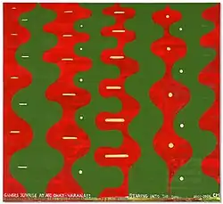 He makes colorful, abstract paintings, often with elements of collage and text.[4][5] His work is casualist, and employs various media.[6][7] He considers it to be influenced by the Catskill Mountains, which he often visited when young.[8][7][9][10]