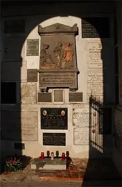 Inside the galleries are numerous epitaphs for deserving people (including the writer Klementyna Hoffmanowa, the painter Rafał Hadziewicz, the poet Stanisław Jachowicz, the president of Vilnius Wiktor Malaszewski, and Stanisław Englert), people killed during World War II, people who died in Nazi concentration camps, and Polish soldiers who fought in defence of their country.