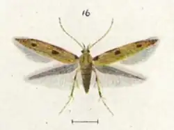 This species was first described by Edward Meyrick in 1916 using a specimen collected by George Hudson at Wainuiomata in December.[4] Hudson discussed and illustrated the species in his 1928 publication The butterflies and moths of New Zealand.[5] In 1973 John S. Dugdale discussed the species and illustrated the wing venation as well as the genitalia of both the male and female.[6] The holotype specimen is held at the Natural History Museum, London.[7]