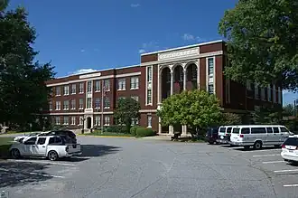 Claremont High School Historic District is a national historic district located at Hickory, Catawba County, North Carolina. The district encompasses 172 contributing buildings and 3 contributing structures in a predominantly residential section of Hickory. Most of the dwellings date from the late 19th through mid-20th century and include notable examples of Queen Anne, Colonial Revival, Tudor Revival, and Bungalow / American Craftsman style architecture. The Claremont High School was completed in 1925, and is a three-story, H-shaped, Neoclassical style school. The school was rehabilitated in 1986 as an arts and science center. Other notable buildings include Maple Grove (c. 1875), Shuler-Harper House (1887), Harvey E. McComb House (1889), (former) Corinth Reformed Church Parsonage (1895), Shuford L. Whitener House (1897, c. 1910), Judge W. B. Councill House (1902), George W. Hall House (c. 1906), Carolina Park, Josephine Lyerly House (c. 1912), John L. Riddle House (1918), Marshall R. Wagner House (1938), David M. McComb Jr. House (1939), Arthur H. Burgess House (1940), and R. L. Noblin House (1950).[2][3]