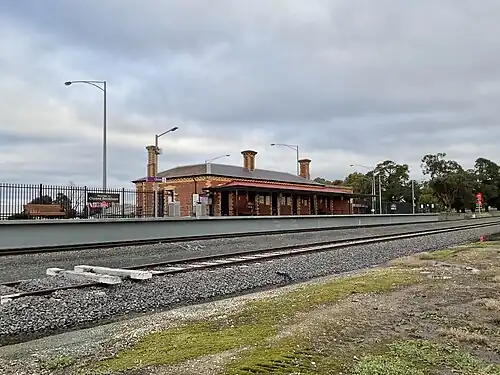 Clunes railway station is a regional railway station on the Mildura line, part of the Victorian railway network. It serves the town of Clunes, in Victoria, Australia. Clunes station is a ground level unstaffed station, featuring one side platform. It opened on 16 November 1874, with the current station provided in 2011. It initially closed on 12 September 1993, then reopened on 3 December 2011.[1]