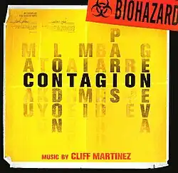 Contagion (Original Motion Picture Soundtrack) is the album consisting of original score composed by Cliff Martinez for the 2011 film Contagion, directed by Steven Soderbergh. The film marked Martinez and Soderbergh reuniting for the first time after nine years, since Solaris (2002).[1] The score consists of orchestral elements which were incorporated, and being fused with the predominantly electronic sounds of the score. Several pieces of the score had been written with the influences of temp music used by Soderbergh in the edits. The score consisting of 20 tracks was released by WaterTower Music on September 6, 2011,[2] while the vinyl edition was released on October 20, 2017 by Real Gone Music.[3]