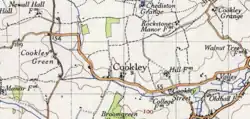 Cookley is a small village and civil parish in the East Suffolk district, in the east of the county of Suffolk, England. Nearby settlements include the town of Halesworth and the village of Walpole. The village includes the church, cottages and a farm that follows the stream which joins the Blyth River at the town of Halesworth.[2] The church and houses are on the rising ground to the North of the stream.[2]
