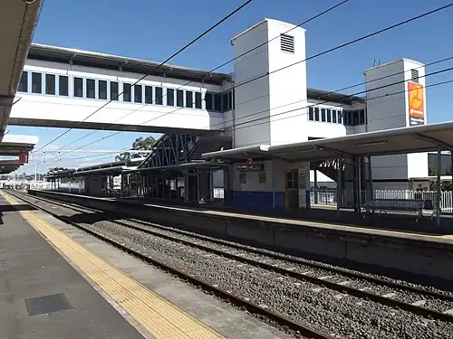 The station opened in 1885 at the same time as the line.[1] In 2008, an upgrade of the station was completed as part of the Salisbury to Kuraby triplication project. This included converting the western platform to an island, and a new footbridge with lifts.[2][3]