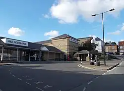 The site of the former station in 2018, now occupied by a Marks and Spencer store. The blue wall plaque near the centre of picture reads:
