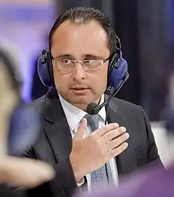 In April 2017, Bușoi became head of the PNL's Bucharest chapter, being elected as the only candidate.[9] The following month, he entered the race for the PNL's national presidency,[10] which he lost to Ludovic Orban on a 78–21 margin.[11] In June 2019, following the party's poor performance in the capital city at the European Parliament election, he resigned from the Bucharest chapter leadership.[12] Bușoi himself won a new term as MEP.[13]