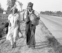 Cotton workers on the road, carrying all they possess in the world during the Great Depression. Crittenden County, Arkansas, 1936.