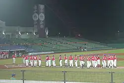 Cuban team lining up prior to the gold medal game in the 2006 Intercontinental Cup against the Netherlands
