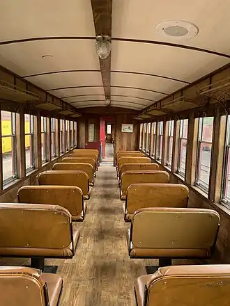 For passenger services, the C&TSRR operates a mixture of flat roofed and clerestory cars, with interiors corresponding with the railroad's three classes of service: Coach, Deluxe (formerly Tourist class) and Parlor.[24] In 2019, the car shop in Antonito, Colorado, finished the first in a line of new clerestory cars that will serve as standard passenger cars and new Parlor cars. This is part of an effort to retire the older flat roofed cars due to their age.[19] The C&TSRR also operates observation gondolas as well as special coaches configured to accommodate wheelchairs and house concession areas.[25]