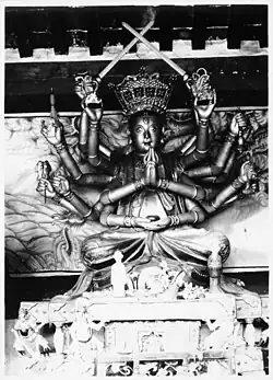 Shrine and statue of the eighteen-armed form of Cundi from the Mahavira Hall of Lingyin Temple in Hangzhou, Zhejiang, China