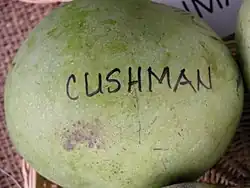 The 'Cushman' mango is a mango cultivar that originated in south Florida. The variety had limited to no commercial application but has been sold as a dooryard tree.
