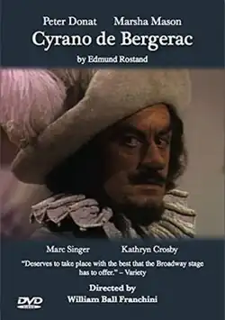Cyrano de Bergerac is a 1974 videotaped television production of Edmond Rostand's famous 1897 play about the lovestruck swordsman with the long nose.[1] This production was originally staged by American Conservatory Theater and shown on PBS as part of the Theater in America series.[2][3] It uses Brian Hooker's 1923 translation of the play (with some uncredited revisions), and stars Peter Donat as Cyrano, Marsha Mason as Roxane, Marc Singer as Christian de Neuvillette, and Paul Shenar as the Comte de Guise.[4] Kathryn Grant (wife of Bing Crosby) has a brief role as Lise, the unfaithful wife of pastry cook Ragueneau – a role cut in some productions of the play because of its brevity.