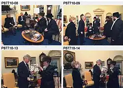 In 1992, New Square voted 822 for President George Bush, to 93 for Bill Clinton. In 1996, voters supported President Clinton over Bob Dole, 1,110 to 31. In 1994, voters backed Mario Cuomo against George Pataki, 907 to 63, and in 1998, voters backed Governor Pataki over Democrat Peter Vallone, 1,132 to 8. In November 2000, vice president Al Gore received more votes than George W. Bush, 1,388 to 25, after the former visited Twersky in February of the year. During the 2000 Senate campaign, First Lady Hillary Clinton visited Rabbi Twersky and his wife in New Square, while running for the U.S. Senate, and received nearly 100 percent of the local vote. Twersky was invited to the White House in December 2000 (Hanukkah 5761),[10] and secured commutations for the criminal sentences of four Skver Hasidim, who had been convicted of defrauding the government of more than 30 million dollars to benefit the educational institutions of New Square.[11]