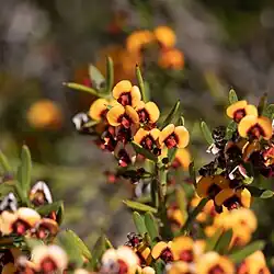 2. ^ a b Crisp, Michael D.; Cayzer, Lindy; Chandler, Gregory T.; Cook, Lyn G. (2017). "A monograph of Daviesia (Mirbelieae, Faboideae, Fabaceae)". Phytotaxa. 300 (1): 35–37. doi:10.11646/phytotaxa.300.1.1.