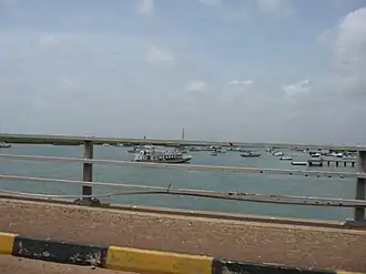 Denton Bridge is a prominent bridge in The Gambia that connects the capital city of Banjul, located on St. Mary's Island, to the mainland. Named after Sir George Chardin Denton, the former Governor of Gambia, the bridge has a span of 210 m and crosses over the Tanbi Wetland Complex.[1] The bridge is a girder bridge that opened in 1986 and is the sole roadway connecting the mainland to Banjul, with the only other method of entrance being a ferry from Barra.[2]