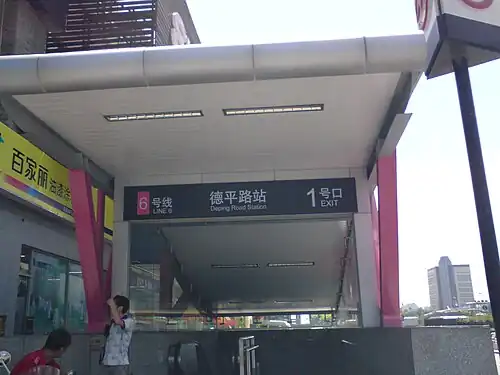 Deping Road (Chinese: 德平路; pinyin: Dépíng Lù) is a station on Line 6 of the Shanghai Metro.[1] It began operation on December 29, 2007. There are a total of four exits in the station.
