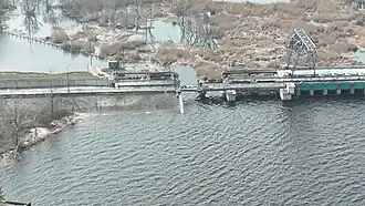 The destruction of the Kozarovychi Dam, which separated the reclaimed floodplain of the Irpin River from the Kyiv Reservoir, was carried out by the Armed Forces of Ukraine on February 26, 2022, in order to prevent the advance of Russian troops during Russia's invasion of Ukraine. As a result, more than 2,800 hectares of land were flooded, as well as residential areas in the villages of Kozarovychi and Demydiv.[1][2]