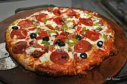 In 2010, Kraft sold the DiGiorno and Delissio brands, along with the rest of its frozen pizza business, to Swiss-based food manufacturer Nestlé.[3] The move helped to finance Kraft's bid for Cadbury, while also effectively ensuring that Nestlé would not submit a competing bid for the confectionery company.[4] Since Nestlé acquired Kraft's frozen pizza business, the DiGiorno brand has expanded to include bonus appetizers in a box, including breadsticks, boneless chicken pieces called Wyngz, and Toll House cookies.