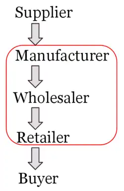 However manufacturers will still incur distribution costs, such as the physical transport of goods, packaging in small units, advertising, and customer helplines, some or all of which would previously have been borne by the intermediary. To illustrate, a typical B2C supply chain is composed of four or five entities. These are the supplier, manufacturer, wholesaler, retailer and buyer.