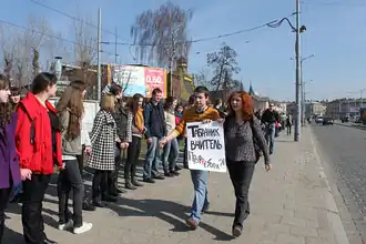 Over 5,000 students in Lviv formed a human chain on March 23, 2010, to protest the appointment of Tabachnyk. Students passed hand-to-hand a large black book in which they “graded” the new minister.[26] The book is expected to travel the country to various universities throughout and then will then be presented to Tabachnyk early April 2010.[26] Smaller anti-Tabachnyk rallies have also taken place in central and southern Ukraine, and even in Donetsk, stronghold of his Party of Regions.[26]