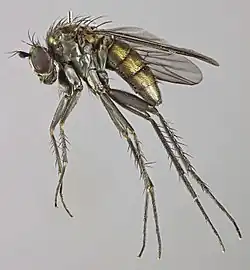 3. ^ Haliday, A. H. (1832). "The characters of two new dipterous genera, with indications of some generic subdivisions and several undescribed species of Dolichopodidae". Proceedings of the Zoological Society of London. 5: 350–368 pl. 15.