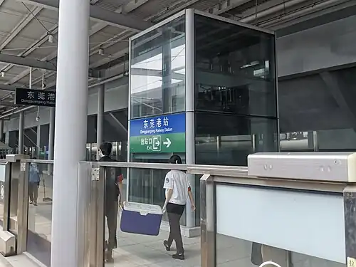Dongguangang railway station (simplified Chinese: 东莞港站; traditional Chinese: 東莞港站; pinyin: Dōngguǎn Gǎng Zhàn; Jyutping: Dung1gun1 Gong2 Zaam6; lit. 'Dongguan Port railway station') is a railway station in Dongguan, Guangdong, China. It is an intermediate stop on the Guangzhou–Shenzhen intercity railway and was opened on 15 December 2019.[1][2]