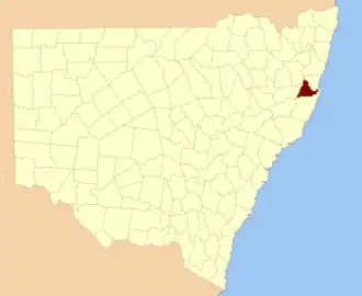 Dudley County is one of the 141 cadastral divisions of New South Wales. Part of the southern border near the coast is the Apsley River.