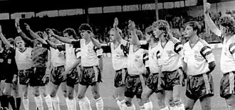 The draw for 1992 UEFA European Football Championship qualifying took place on 2 February 1990, with East Germany drawn in Group 5 along with Belgium, Wales, Luxembourg – and West Germany. By 23 August that year, the East German parliament confirmed reunification for 3 October.[4] The planning for the opening fixture away to Belgium on 12 September was too far along to be canceled, so it was played as a friendly. It was also planned to play East Germany's home fixture against West Germany, scheduled for 21 November 1990 in Leipzig, as a friendly to celebrate the unification of the DFB and DFV, but the game was canceled due to rioting in East German stadia.[5]