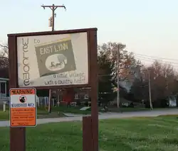 The town, founded in 1872, is said to have been named after the novel and play entitled East Lynne.[3] The Methodist church was actually founded before the town, in 1869. The main trade was in grain. One man, Henry Ludden, filled several early roles in the town, as the first postmaster, the first station agent and the first to operate a store.[4]
