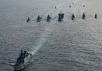 The Eastern Fleet is a Naval fleet of the Indian Navy. It is known as the 'Sword Arm' of the Eastern Naval Command and called the Sunrise Fleet.[2][1] It is headquartered at Visakhapatnam, Andhra Pradesh on the east coast of India. It is a part of the Eastern Naval Command and is responsible for the naval forces in the Bay of Bengal and parts of the Indian Ocean.