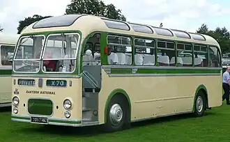 Eastern National Omnibus Company[1] commenced operating in 1929 as a joint venture between the London and North Eastern Railway (LNER), the London, Midland and Scottish Railway (LMS) and the National Omnibus & Transport Company. The National company had originated in 1909 as the National Steam Car Company, operating steam bus services in London. The London services ceased in 1919, when the company was renamed National Omnibus & Transport Company. The company expanded outside London, first in Essex (1913), where the company bought the bus operations of the Great Eastern Railway around Chelmsford, and later in Bedfordshire (1919), Gloucestershire (1919), Somerset (1920), Dorset (1921), and Devon and Cornwall (1927).[2] The National continued to expand in Essex, Hertfordshire and Bedfordshire.