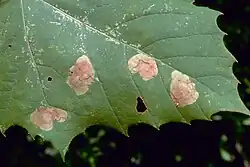 The larvae feed on Platanus species. They mine the leaves of their host plant.