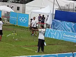 Ibrahim Sabry at the Junior Men's Individual archery competition taking place on 21 August 2010 at Kallang Field, Singapore. Ibrahim eventually won the event.
