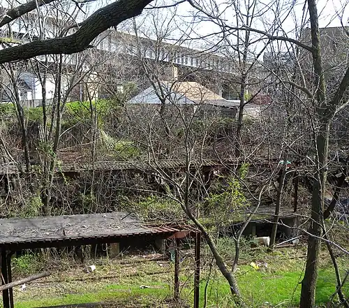 Elm Park is a station on the abandoned North Shore Branch of the Staten Island Railway (SIR). The station is located in an open cut under the Bayonne Bridge approach in Elm Park, Staten Island, at Morningstar Road between Innis Street and Newark Avenue. It has two tracks and two side platforms.[1][2] The station is approximately 3.9 miles (6.3 km) from the Saint George terminal of the SIR.[3]