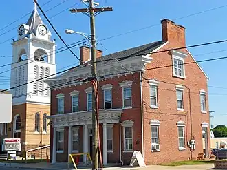 The Englehart Melchinger House in the borough of Dover, York County, Pennsylvania, is the restored home of a prominent 19th Century businessman, Englehart Melchinger. It was built about 1852, and is a rectangular brick building with Greek Revival and Italianate design details. It features an entrance portico with Doric order columns, heavy scroll brackets, and a paneled frieze; and cast iron lintels.[2]