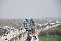 The six viaducts have a total length of 14.4 km (8.9 mi).[9] Originally they were to be 11.3 km (7.0 mi) long.[19] In 1994, five major bridges were planned with a length of around ten kilometres.[20]