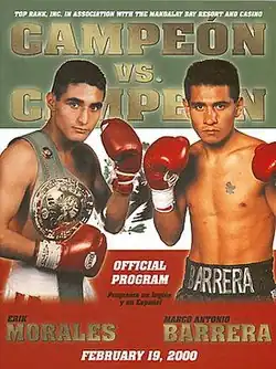 Erik Morales vs. Marco Antonio Barrera, billed as Campeón vs. Campeón, was a professional boxing match contested on February 19, 2000, for the WBC and WBO super bantamweight championship.[1] It took place at the Mandalay Bay Resort & Casino in Las Vegas, Nevada.