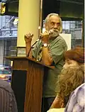 Matt McMillan praises the film overall, appreciating its "wry wit and AD/HD editing velocity", calling Nerenberg's style "one of the most distinctive" in Canadian documentaries.[17] Dorothy Woodend compares Escape to Canada favourably to Nerenberg's last film, Stupidity, saying it "packs a similar punch", and that the film is "jammed with both ephemera and critical ideas ... but one of the things that stands out most clearly is the high cost of courage."[10] Dominic Bouchard, while acknowledging the limitations of the film's binary oppositions, appreciated its caustic humour, comparing it favourably to the work of Michael Moore,[18] as does Louis Proyect, specifically, to Sicko.[19]