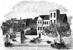The property occupied the site where the Outer Temple, part of the London headquarters of the Knights Templar, had previously stood, and was immediately adjacent to the Middle Temple, one of the four Inns of Court.[1] The house was substantial; in 1590, it was recorded as having 42 bedrooms, plus a picture gallery, kitchens, outhouses, a banqueting suite and a chapel.