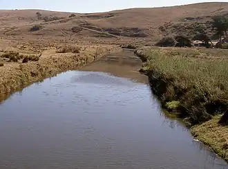 The United States Geological Survey's Geographic Names Information System cites ten variant names for this stream, including Stemple Creek (the name of its main tributary), Estero De Americano (almost identical to the parallel estuary 2 mi (3 km) north), Arroyo de San Antonio (also applied to Walker Creek, a parallel estuary 5 mi (8 km) south), and San Antonio Creek (the name of a creek further east along the county line).[1] In particular, the Estero's watershed is often referred to as the Stemple Creek watershed.[4] The stream is also referred to as Fallon Creek.[5]